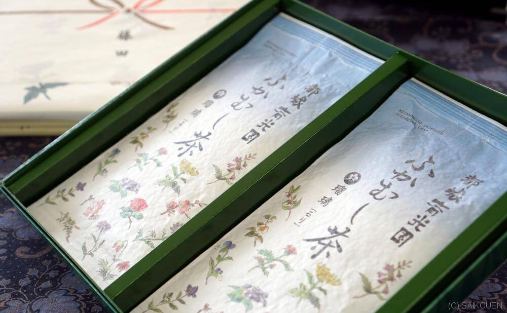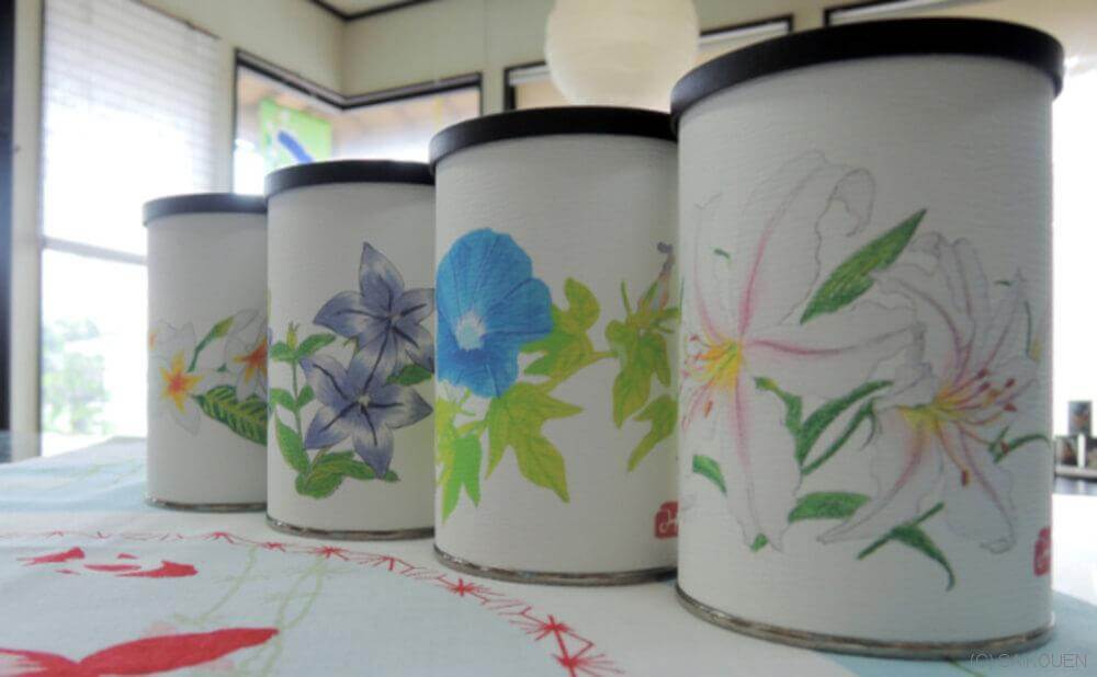 斉光園の茶缶は季節により絵柄が変わります。 当園にて季節に合わせた柄をお選びしますが、 ご要望あれば、お好みの絵柄も選択可能です。